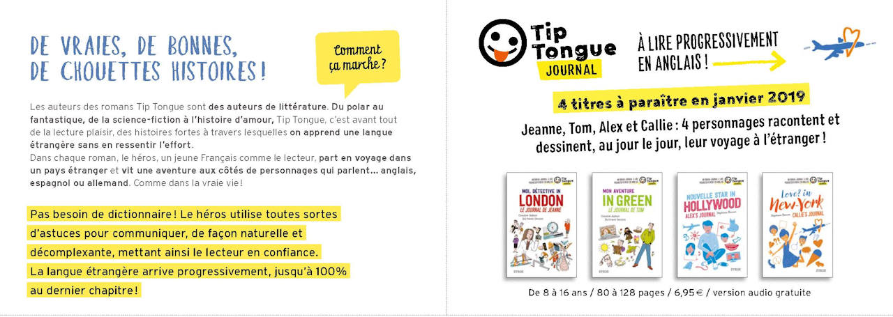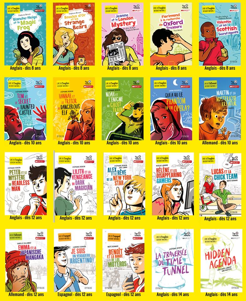 Des romans en français qui passent petit à petit en anglais,en espagnol ou en allemand de manière progressive et naturelle. Un plaisir de lecture immense et la fierté de comprendre une langue étrangère.